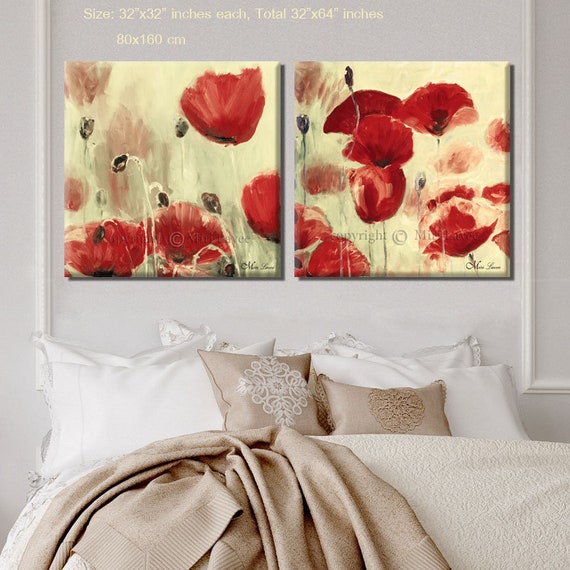 Painting of Flower Wall Art Set Large Canvas Art Romantic | Etsy